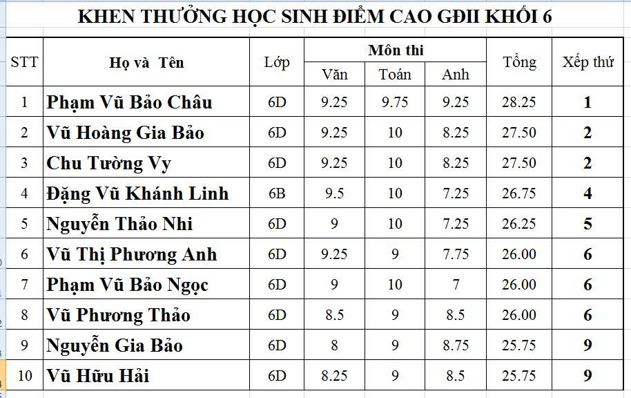 VINH DANH CÁC EM HỌC SINH ĐẠT THÀNH TÍCH XUẤT SẮC TRONG KỲ THI TUYỂN SINH VÀO LỚP 10 THPT NĂM HỌC 2025-2026.