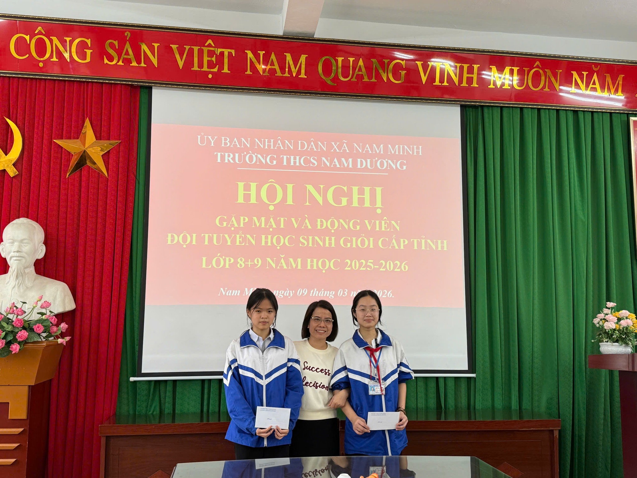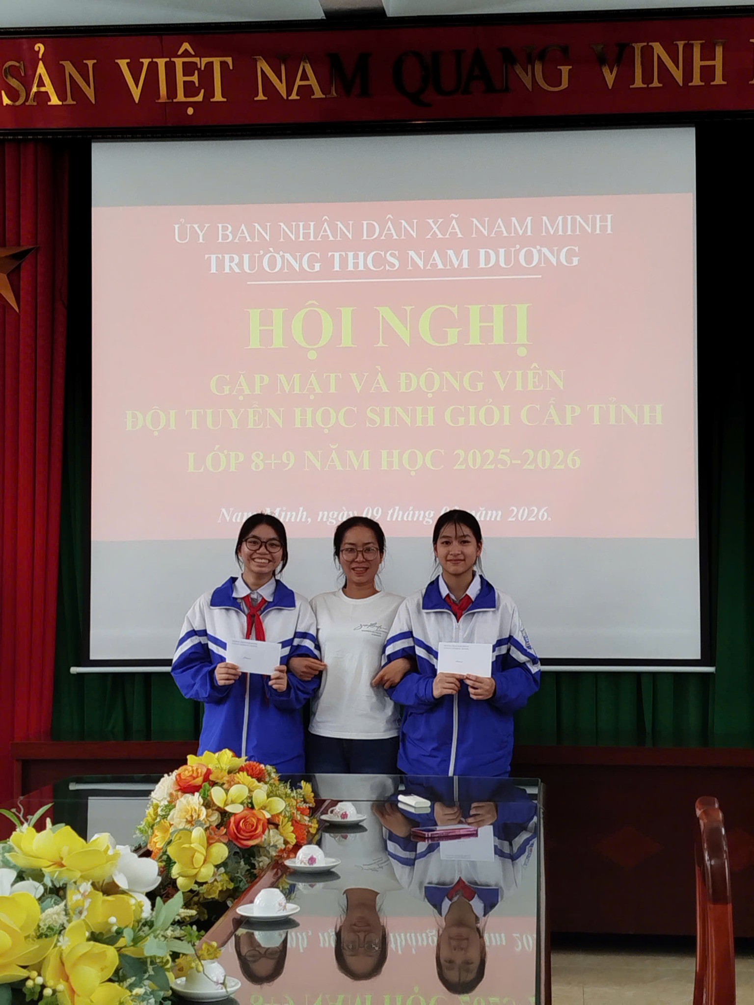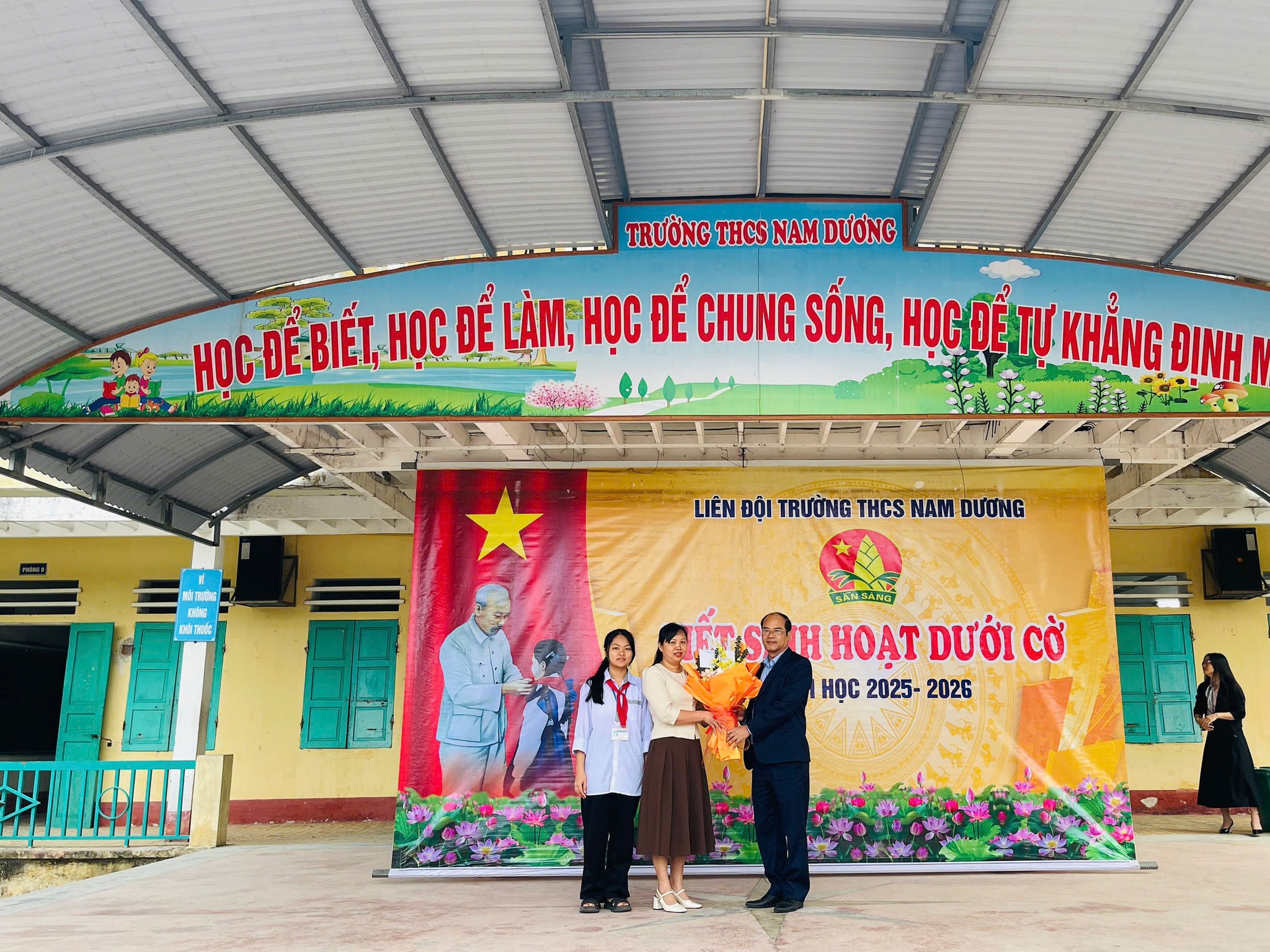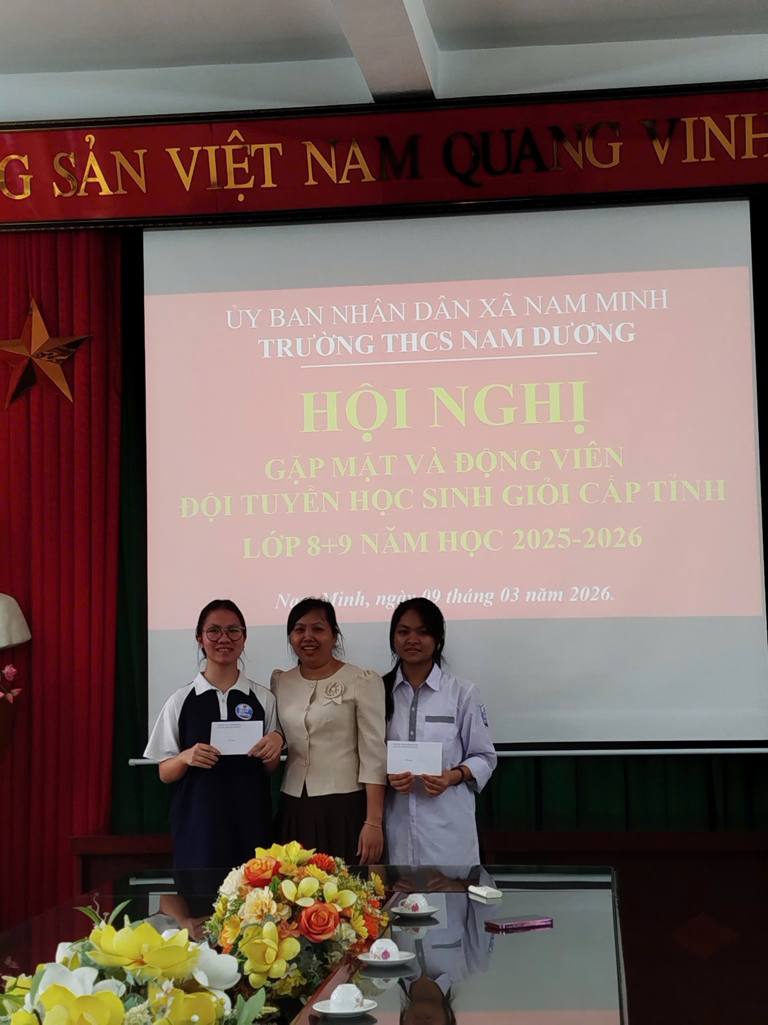 Sáng nay thứ Hai, ngày 09/03/2026. Trong không khí trang nghiêm của buổi Lễ chào cờ đầu tuần, thầy và trò Trường THCS Nam Dương rất vinh dự được đón tiếp các đồng chí Lãnh đạo đại diện cho Đảng ủy, HĐND, UBND và các ban ngành đoàn thể của xã Nam Minh về dự, động viên các thầy cô giáo và các em học sinh tham dự kỳ thi học sinh giỏi cấp Tỉnh vào sáng mai thứ Ba, ngày 10/3/2026 tại địa điểm thi trường: THPT Lý Tự Trọng.